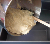 All the ingredients are then mixed together, usually for about 3 minutes. The consistency of the dough is usually sticky, like a thick cake batter.