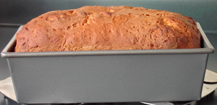Time to bake the bread. Depending on the recipe, this takes from 45 to 65 minutes. Some recipes will have you cover the bread after a little while so that it doesn’t get too dark on top. In general, you want the bread to sound hard and hollow when you tap the top of the loaf. Turn the loaf out on a rack and let it cool completely before you slice it.
