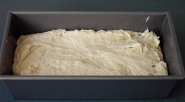 Spoon the dough into a loaf pan. Most recipes call for a 81/2 by 41/2 inch loaf pan. The pan should be greased or oiled (use a paper towel and rub the inside of the pan with shortening, butter or oil, or use a spray oil). Spread the dough evenly in the pan. If it seems too sticky, put a little oil or water on your spatula and then smooth the dough.